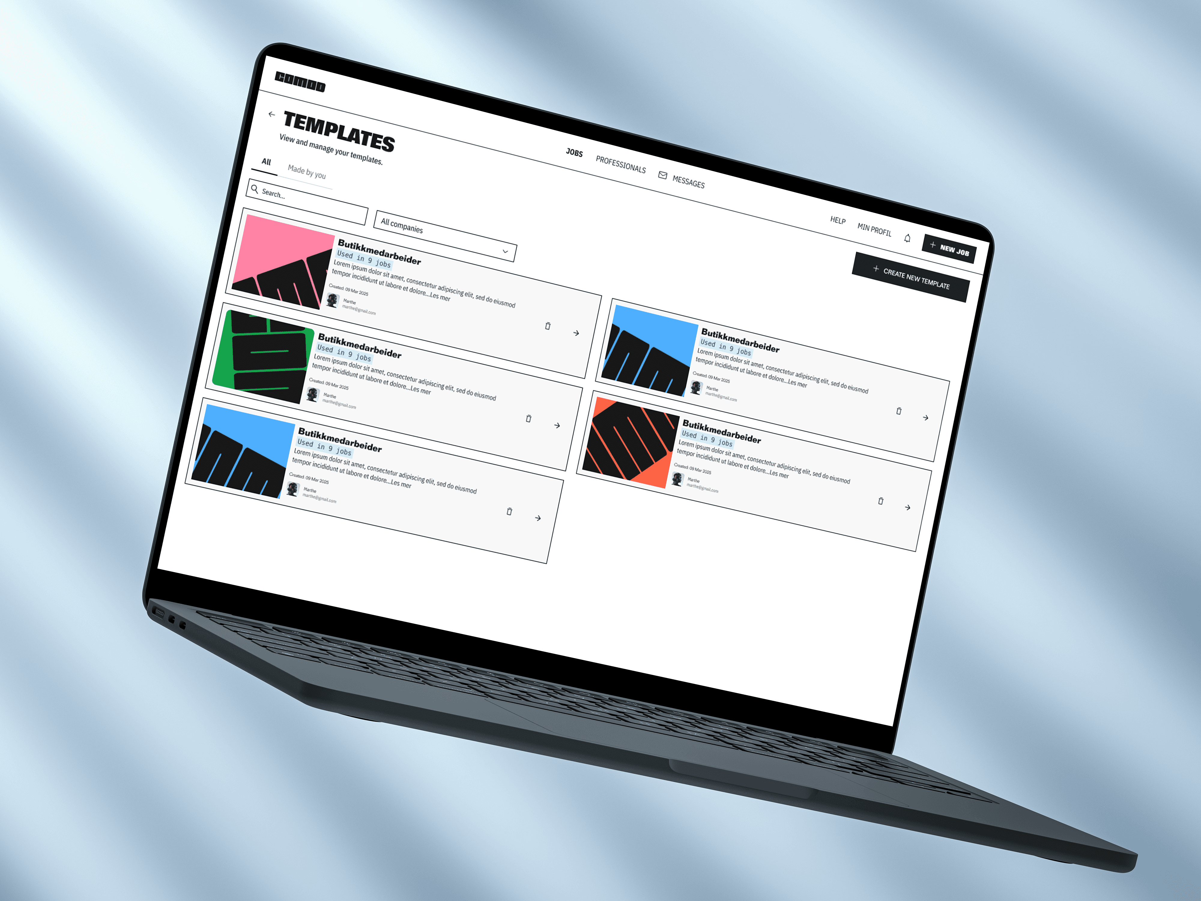 The visual language of COMOD is deliberately bold and unapologetic, designed to stand out in a category often dominated by neutral, invisible interfaces. Large colour fields, high-contrast typography, and graphic repetition are used to create a strong sense of identity and recognition across both the employer website and the worker app. Colour functions as both navigation and attitude. The art direction embraces visibility and confidence, reflecting the social and public nature of the work being facilitated: shifts, events, people, and real-world interactions. Interfaces are clean and structured, but never anonymous. Content is framed boldly, allowing imagery, listings, and calls to action to feel immediate and direct.